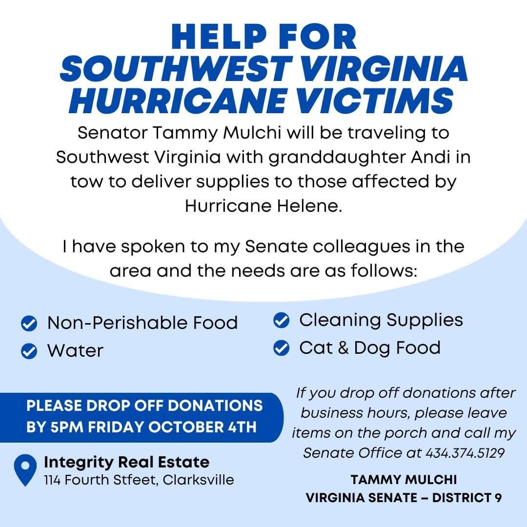 As your Senator, I am determined to ensure that no one is left behind in this recovery. This weekend, I will transport supplies to Southwest Virginia, and I need your help.