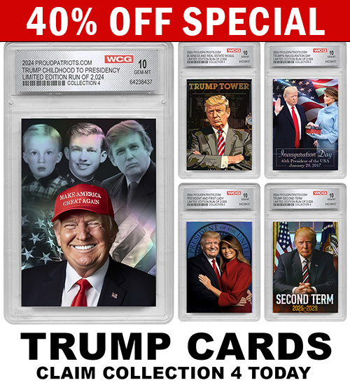 Limited Print Run of only 2024 available for sale. Collection #4 is comprised of 5 newly designed, highly collectible Physical Trump Trading Cards!