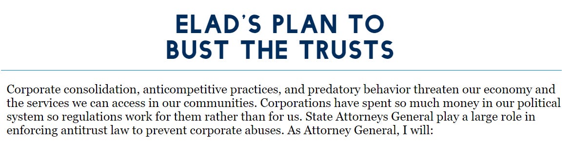Welcome to You’re Probably Getting Screwed, a weekly newsletter and video series from J.D. Scholten and Justin Stofferahn about the Second Gilded Age and the ways economic concentration is putting politics and profits over working people. You're Probably Getting Screwed by Attorneys GeneralAG Candidates Should be Talking About Corporate Monopolies!Welcome to You’re Probably Getting Screwed, a weekly newsletter and video series from J.D. Scholten and Justin Stofferahn about the Second Gilded Age and the ways economic concentration is putting politics and profits over working people. Welcome to October, election day is around the corner! While the presidential race dominates the news, there are plenty of important races across the country (a certain Iowa legislator is running for reelection!) including 10 states with the attorney general on the ballot. State attorneys general play a huge role in reigning in the abuses of corporate monopolies. Bipartisan coalitions of state AGs have often joined the Department of Justice (DOJ) and Federal Trade Commission (FTC) in lawsuits seeking to block mega-mergers or stop anticompetitive conduct. AGs also enforce and can advocate for state antitrust laws and other protections for workers, small businesses and farmers or for additional funding as many attorneys general lack the necessary enforcement staff. Despite this critical role, campaigns for these offices often focus on public safety, corruption and more recently reproductive rights. Those issues are obviously important, but at a time when voters of all stripes are expressing distaste for corporate monopolies and are concerned about their influence, attorneys general should be playing a major role. Of the 10 states featured in the map above, the two most competitive are in the battleground states of Pennsylvania and North Carolina. In Pennsylvania - a state without an antitrust law - former Auditor General Eugene DePasquale (D) is running against York County District Attorney Dave Sunday (R). DePasquale it touting his “Record of Standing up to Bullies.” Among the key priorities he has outlined in interviews is addressing healthcare consolidation and ensuring large health systems don’t monopolize the industry, a major issue in a state that is home to the massively powerful University of Pittsburgh Medical Center (UMPC). On his website DePasquale also emphasizes worker protections and cracking down on corporate power as key priorities. Sunday meanwhile has focused on public safety and immigration and does not appear to have said anything about corporate power. Antimonopoly has gotten little attention in North Carolina despite outgoing Attorney General Josh Stein (D) recently suing RealPage for price-fixing rents and generic drug manufacturers for inflating prices. Stein also touted his record of cracking down on monopolies in announcing a new small business coalition supporting his current gubernatorial bid. Running to replace Stein are Congressmen Jeff Jackson (D) and Dan Bishop (R), each of which have focused on issues besides corporate power. In Congress neither candidate has a strong record on these issues either, but Bishop in particular has used his time on the Judiciary Committee to question the Federal Trade Commission’s authority to ban noncompete clauses and suggested Chair Lina Khan wields too much power, as opposed to say the monopolists. Outside these highly competitive races, there are candidates for attorney general touting their populist credentials. Vermont Attorney General Charity Clark (D) has taken on pharmacy benefit managers while in office, suing CVS Caremark and Express Scripts, which control 95% of the market in Vermont. Clark also asked joined the DOJ antitrust suit against Ticketmaster-Live Nation and has fought for new privacy protections as a way to address Big Tech’s surveillance business model. Indiana Democrat Destiny Wells - in a race that could be closer than expected - has made worker protections a key priority. “We have never reimagined the attorney general’s office to serve workers, to serve the middle class, and we want to create a worker’s rights task force similar to what other states have on a much broader scope. We want to be able to look at things like wage theft, worker misclassification.” Similar to Wells, Oregon Democrat Dan Rayfield has a plan to build a new labor enforcement team in the Attorney General’s Office and crack down on a range of worker abuses. This includes going after wage theft, union busting, misclassification and noncompete clauses. Every AG candidate should take a tip from Missouri Democrat Elad Gross and his plan to “Bust The Trusts” that includes cracking down on anticompetitive behavior, policing price fixing, preventing mega mergers, and investigating “Big Tech, Big Ag, Big Agriculture, Big Health Care, Big Energy, Big Telecom, Big Retail, and Big Finance.” This of course is just a peak at current conditions. Many more AGs will be on the ballot in 2026, but it says something that so few candidates are touting efforts to curb concentrated corporate power this year. This includes the Democratic Attorneys General Association and the Republican Attorneys General Association which make scant mention of corporate monopolies. Every debate between attorney general candidates should include questions about how to address our monopoly crisis, because if the only people talking about it are in Washington DC, we are screwed. YOU’RE PROBABLY (ALSO) GETTING SCREWED BY:Not Jonathan Kanter Speaking of AGs, Assistant Attorney General for Antitrust Jonathan Kanter is having a moment. As we talked about previously in August, a federal court issued a monumental decision in the DOJ’s case against Google, holding that Google Search and the text ads in that search engine are monopolies and that Google has used anticompetitive tactics to protect those monopolies. Rolling Stone just came out with an article about the DOJ