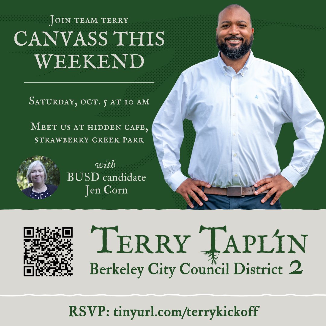Join Terry and Jen Corn (one of our endorsed Berkeley School Board candidates) at a weekend canvass, sign up to volunteer on a different date, get involved at [email protected], and/or donate today!