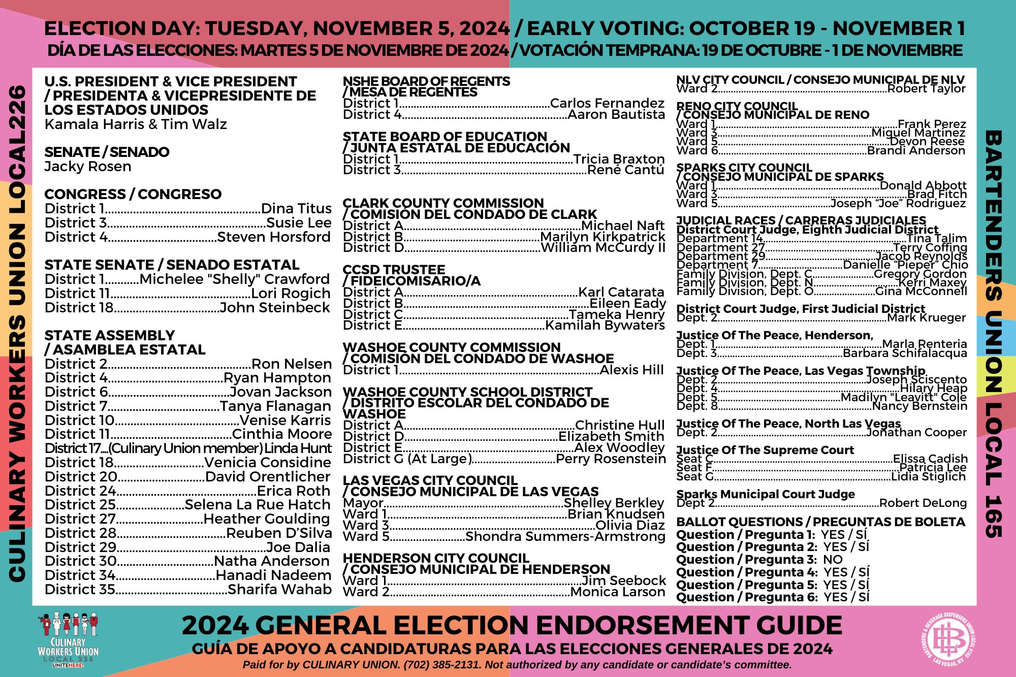 Culinary Union has released endorsements ahead of the 2024 Nevada General election.
