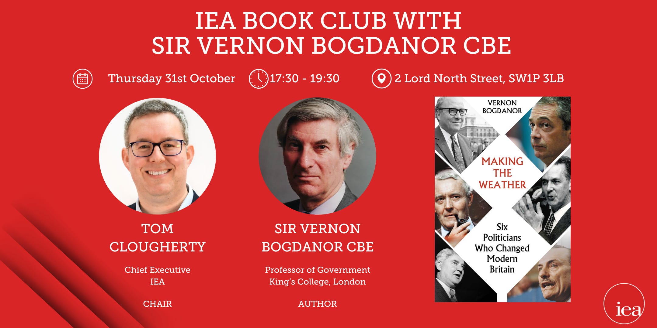 The IEA Book Club will be hosting an upcoming event with Sir Vernon Bogdanor on his latest book, “Making The Weather: Six Politicians Who Changed Modern Britain”. This event will take place on Thursday 31st October from 17:30 – 19:30 at the IEA Westminster offices. Chairing this event is Tom Clougherty (Executive Director and Ralph Harris Fellow).