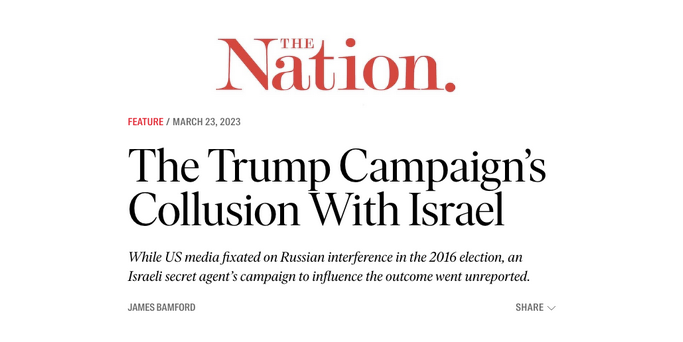 In the aftermath of the Mueller Investigation one of the least reported findings of the case was that the FBI uncovered hard evidence of extensive collusion between close Trump associates and the highest levels of the Israeli government.