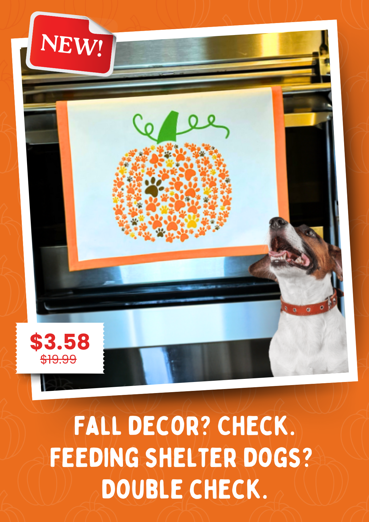 This towel isn't just a cute addition to your kitchen—it’s a BIG deal for your wallet and for shelter dogs! At just $3.58 (originally $19.99), you can save big and feed 2 shelter dog with every purchase.