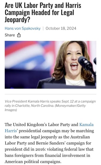 The integrity of our elections is under attack once again. As reports surface that Sofia Patel, head of operations for the U.K.'s Labor Party, is recruiting members to campaign for Kamala Harris in key swing states like North Carolina, Nevada, and Pennsylvania, we are reminded of a critical truth: