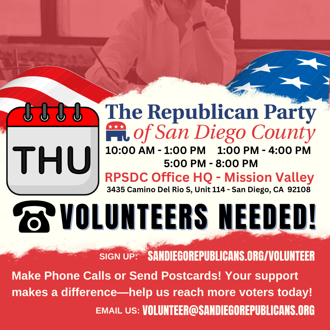 (858) 450-4600 | Admin@SanDiegoRepublicans.org