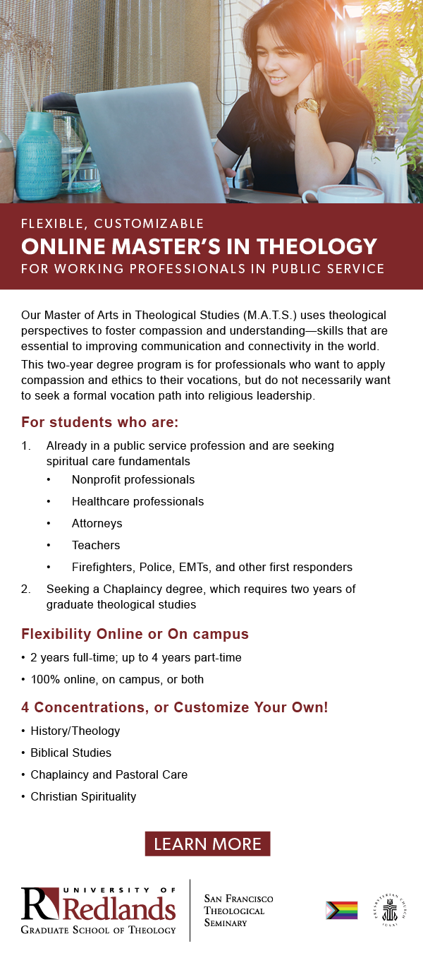 Our Master of Arts in Theological Studies (M.A.T.S.) uses theological perspectives to foster compassion and understanding—skills that are essential to improving communication and connectivity in the world.