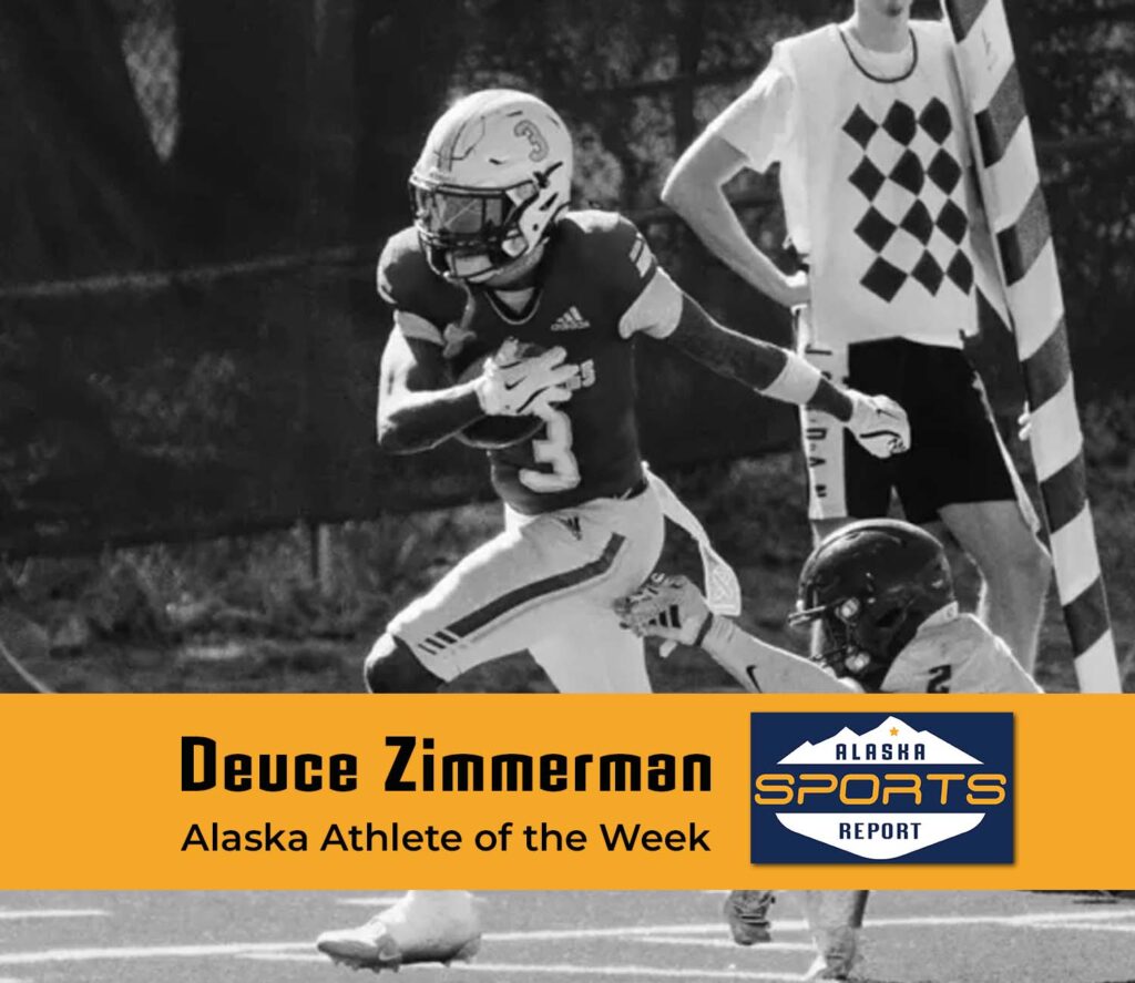 Anchorage football player Deuce Zimmerman hauled in 11 catches for 124 yards and four touchdowns for Western New Mexico in in a 41-34 loss to Eastern New Mexico in NCAA Division II football. He scored on catches of 11, 10, 11 and 5 yards to become the fifth Alaskan to...