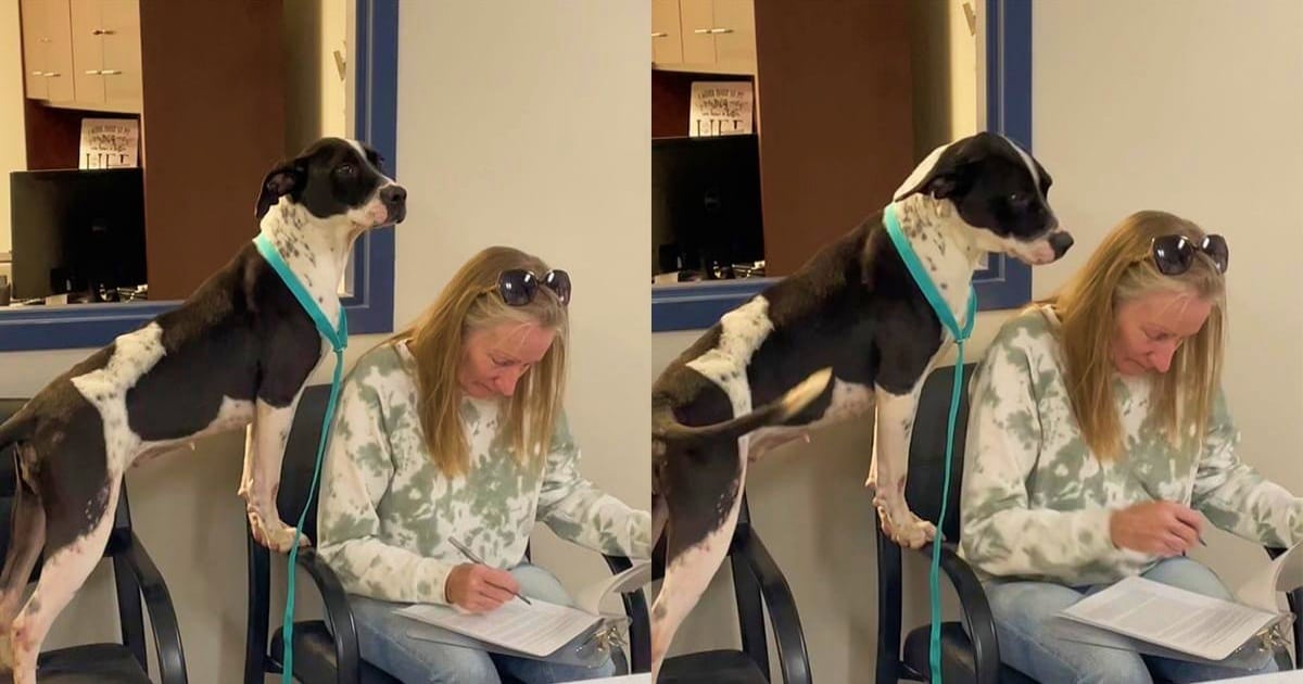 Dog Stands Over New Mom As She Signs Adoption Papers