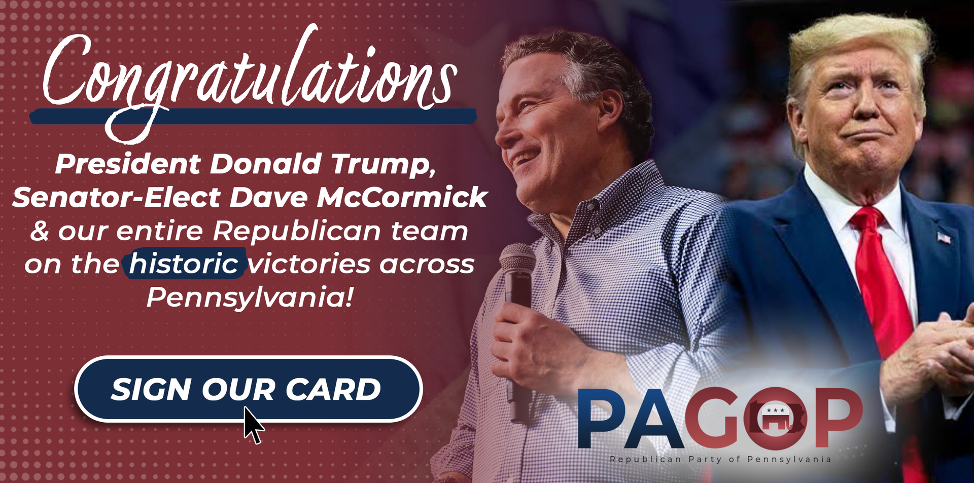 By working together we've achieved incredible success! Our Republican Team would not have been able to do this without your support. Will you sign our card and congratulate them and their campaign teams on an incredibly hard-fought campaign? Thank you for supporting us through the election. Now, it's time to get to work! Team PAGOP |