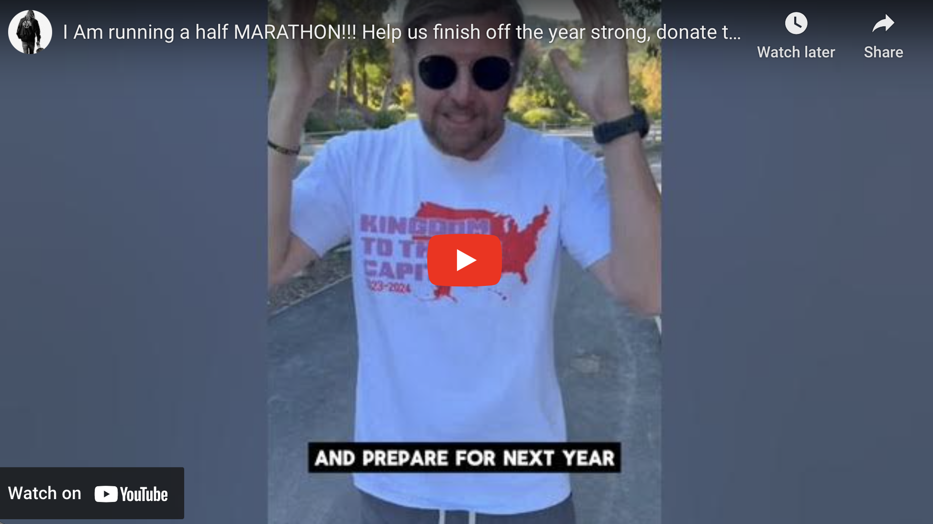 After spending the last two years traveling across America, holding over FIFTY praise and worship revivals, I planned on catching my breath. Nope! My wife roped me into running a half-marathon TOMORROW in Monterey, California! It's crazy, but it's happening! I'm stepping up and RUNNING THE RACE, and I'm calling on Let Us Worship to have my back! I'm turning this into a run for revival in 2025, and raising money to help launch the next move of God in 2025.