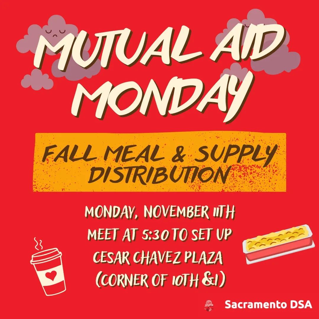- The Sacramento DSA Local Convention will be held on Saturday, Nov. 23rd at 2pm, at Arden-Dimick Library and on Zoom. We will be electing our next steering committee and voting on important chapter bylaws and priorities. RSVP here. Click here to submit a convention resolution.