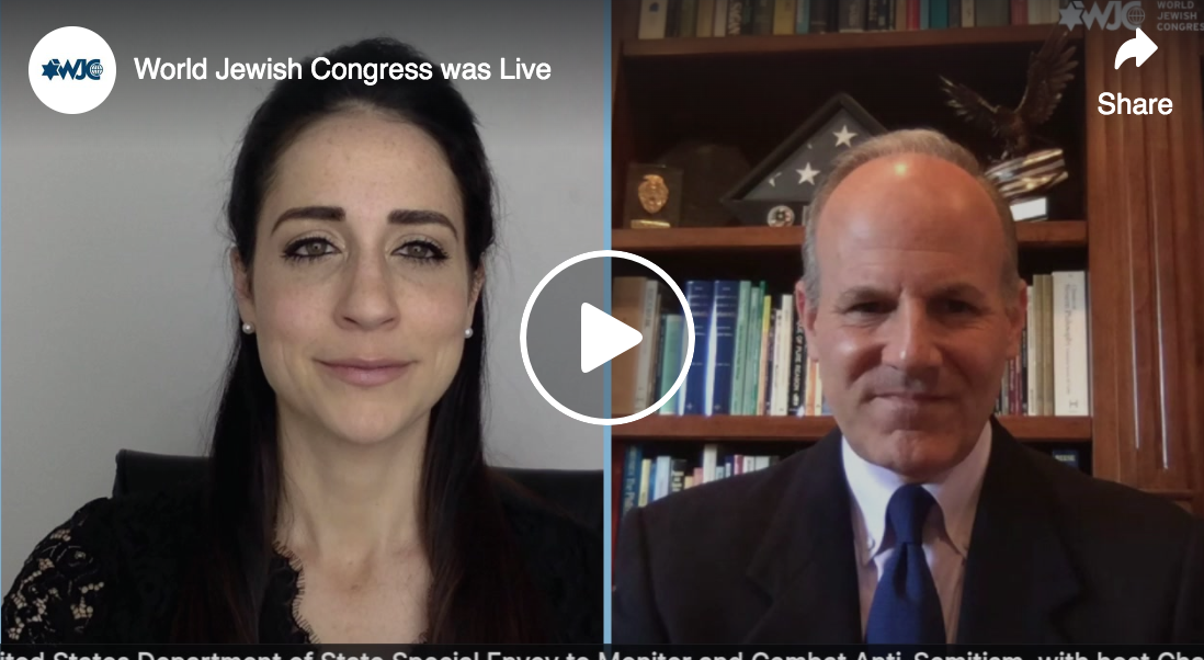 U.S. Department of State’s Special Envoy to Monitor and Combat Anti-Semitism Elan Carr discusses with Chaya Singer, member of the WJC Jewish Diplomatic Corps, how the U.S. government is continuing to remain vigilant against hate during the COVID-19 pandemic.
