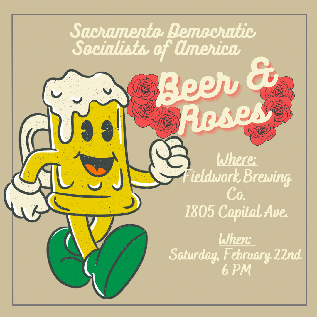 - Beer and Roses Social: Saturday, February 22nd, 6 PM Location: Fieldwork Brewing Co. 1805 Capital Ave.