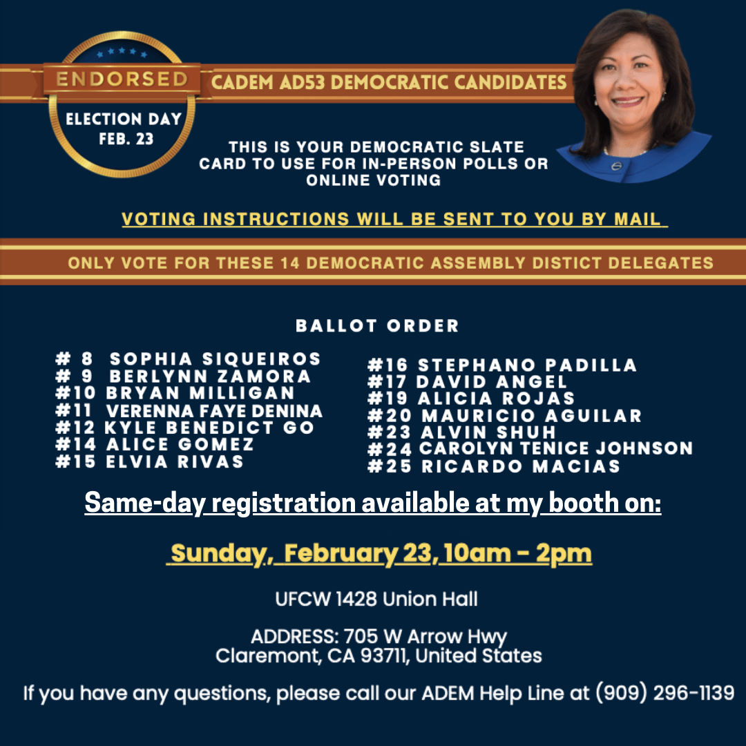 Tomorrow, Sunday, February 23, Inland Empire communities will have a pivotal opportunity to elect strong Democratic leaders - at a time when the stakes couldn't be higher. Our voices need to be heard, loud and clear.