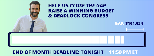 That's why my team is all hands on deck right now. We're running ads, have hired 100+ paid canvassers, and are knocking over 10,000 doors a day. But it's not enough, as my finance Director Jackson mentioned in his email to you yesterday we are drastically behind on our February end of month goal and it is imperative that we catch up before midnight tonight.