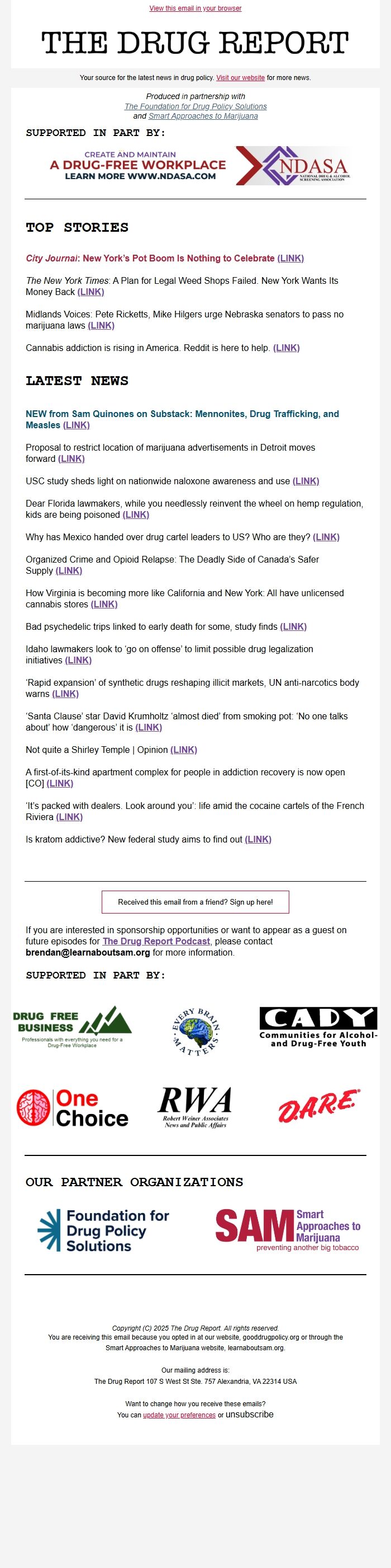 Your source for the latest news in drug policy. Visit our website ([link removed]) for more news.
