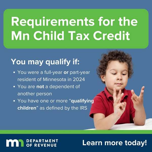 If you’re working on your taxes, a reminder to claim the Child Tax Credit when filing your Minnesota income tax return! Last year, nearly 225,000 families claimed the Child Tax Credit and saw an average total credit of $2,500 back in their pockets. It varies based on income.