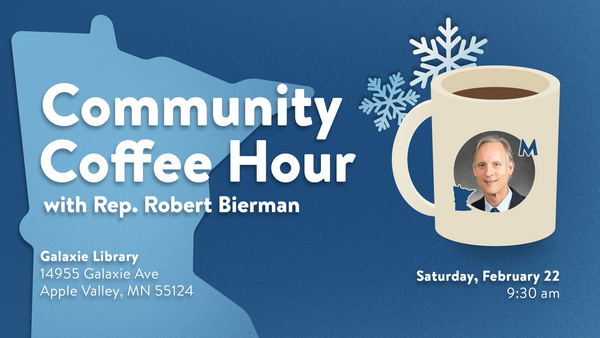 I hope you can attend the next Community Coffee Hour I'm hosting this Saturday, February 22 at 9:30 a.m. at the Galaxie Library. It's been a flurry of activity during these recent weeks in St. Paul and I'm looking forward to providing an update and hearing your thoughts.
