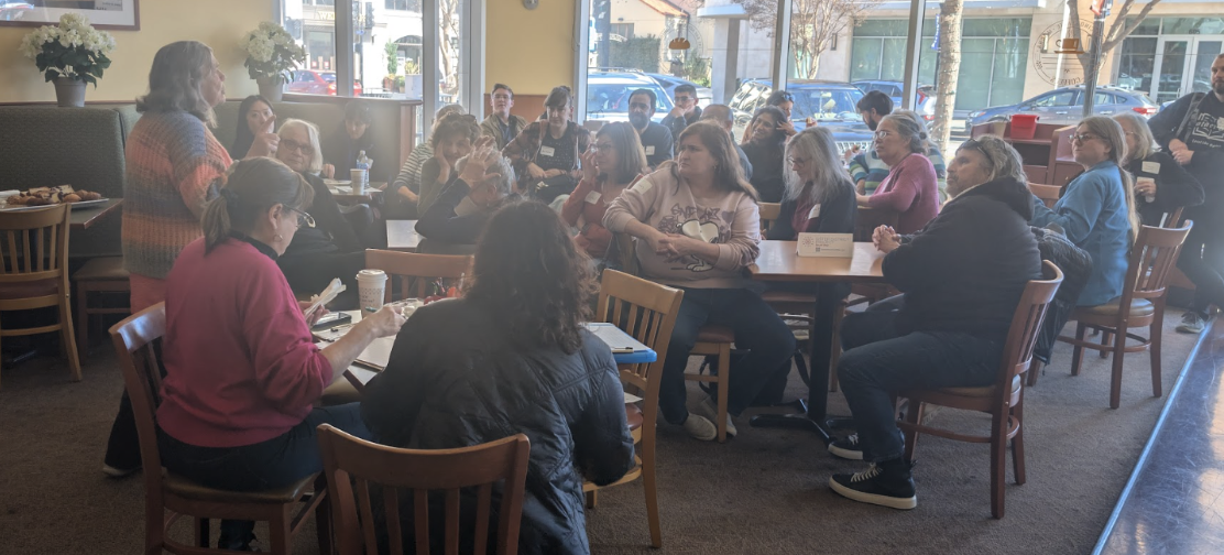 In California, our South Bay team recently hosted an “It Starts With States Coffee Hour.” The event was a resounding success! They hosted 50 like-minded activists — many of whom were recruited during the People’s March — and used the time to write postcards and identify potential phonebankers, cooks, and event planners as we look ahead to what 2025 will bring.