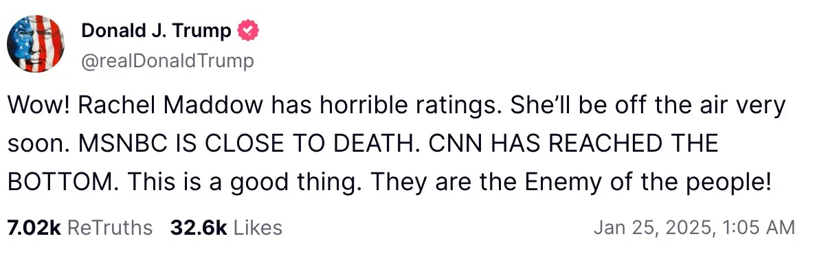 But Donald Trump is attacking Maddow and MSNBC NONSTOP – calling MSNBC an “enemy of the people!”