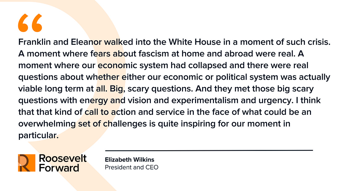 This week, we’re sharing a special conversation between Elizabeth Wilkins, the Roosevelt Institute’s new president and CEO, and Felicia Wong, who’s stepping into a new role as principal after 12 years at the helm. In this interview, they talk about Elizabeth’s priorities in this moment, lessons from her work in the Biden-Harris administration, and how Franklin and Eleanor Roosevelt’s legacy shapes her thinking. This interview was conducted on February 10, 2025, and has been edited and condensed for clarity. Felicia Wong: Hey, everybody. I’m Felicia Wong, the now former CEO of the Roosevelt Institute. I had that job for 12 years. And today, I am super excited to be chatting with our new CEO, Elizabeth Wilkins. Elizabeth, it is just great to have you on the team. You and I have worked together closely over the last few years, and I really look forward to talking to you about what you’re bringing to this organization, this really critical moment in history. So let’s get into it. Why don’t you tell us a little bit about what brought you to Roosevelt? Most recently, you were at the FTC. You were chief of staff and head of policy for Lina Khan. And then before that, you were senior adviser to Ron Klain. You clerked for Merrick Garland. You clerked for Elena Kagan. You’ve worked in the DC attorney general’s office. You started your career as a labor person helping people build power at SEIU, 32BJ. So you’re bringing a tremendous amount to Roosevelt. I just did a big intro of you, of course, but I’d still love to hear you introduce yourself. Elizabeth Wilkins: Thanks, Felicia. And before I get started, I just want to say, not only is it fun and exciting to be taking over Roosevelt in this moment—it is such a delight to be able to do it with you as a partner and to know that you’ve committed to staying on and also helping us build out one of the things I think is most exciting about what we’re doing right now, which is the people pipeline work. So I feel like I have a lot of partners in crime here as I’m stepping into this new role. I come from a long line of people in my family who have dedicated themselves and their careers to making the world a better place for people who have fewer tools to do so. That’s kind of what I grew up on. It’s what I drank up when I was a kid. I remember thinking when I was in high school that, obviously, I was going to be a lawyer, and I didn’t understand why people thought lawyers were icky because the only thing that I knew about lawyers is that they were civil rights fighters. And so, obviously, that was the way to do good things, and I was going to be a civil rights lawyer. But early in my career, I was lucky enough to be introduced to other types of social change, in particular community and labor organizing. Forms of change that really understand power relationships in the economy and the idea that the things that people yearn for in their lives—yes, it’s security. Yes, it’s safety. Yes, it is the means to make choices about their family and their circumstances—but it’s also autonomy. It’s the freedom of choice. It’s the ability to have some control over whether your city fills the potholes on your street or not. It’s the feeling of whether or not you’re respected, whatever your place in the community might be. And I think those early experiences with organizing have really informed the rest of my professional choices. I wanted to go into government to figure out how government can work for people to make sure that they have more of those choices, whether at the local level or the federal level. And that’s why I'm so excited to be here at Roosevelt. I feel like Roosevelt is one of the few organizations that I share a personality with. That kind of decades-long, family-long commitment to making a place in our economy, in our society, and in our democracy for everybody in a really meaningful way. So I hope that’s what I’m bringing to the institute and why I’m so excited to be doing it at this moment. Felicia: I love that description of your own arc. Part of it’s head: Lawyers are going to use their smarts to fight for good. Part of it is heart: your own family, your admiration of the Roosevelt family. But also then the work organizing on the ground, knocking doors. You’ve knocked a lot of doors. You’ve also worked in the most powerful places in government, namely the White House. So that arc is quite capacious. It’s quite amazing. All of us at Roosevelt are really thrilled and really lucky to have you leading this team in this—let’s be honest—pretty challenging moment in American history. So I’d love you to talk about what your priorities are in this moment and also what you’ve seen over the last five or so years that make you say, “Okay. This is what we have to work on now.” Elizabeth: Absolutely. First of all, I want to acknowledge we’re in a moment that feels precarious for a lot of people. I just talked about folks just wanting to have a measure of security for their family and choice in their life, and I am watching some really incredible people do frontline work right now to protect people’s ability to live their lives in safety and security. It’s also a moment where we can see pretty viscerally the ways in which our government institutions and our economic structures are just not working for people and haven’t been for decades. And that frustration can lead in a lot of different directions, and we have the opportunity to try and harness that frustration into something that’s truly better. Building on the legacy of Franklin and Eleanor Roosevelt, what role should government play in shaping the markets that we find ourselves in and in defining the safety net that's gonna catch us when we fall? One of my most rewarding professional experiences was working with Lina Khan, first as a policy director and then also as her chief of staff, at the Federal Trade Commiss