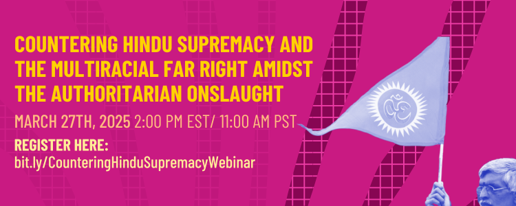 - What role are Hindu supremacists and likely to play in the ongoing multi-pronged MAGA onslaught? How are actors in the multiracial far right leveraging their status as minorities to attack civil rights gains and divide our coalitions?