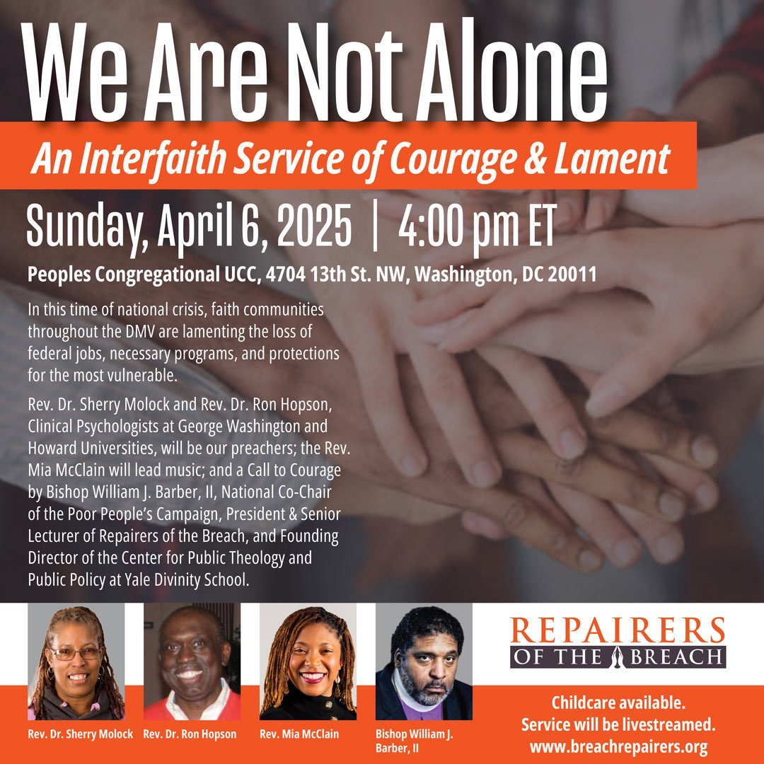 All people fighting for justice, liberty, and a more perfect union are invited to join clergy, faith leaders and people of moral conscience in a powerful stand of prayer and moral resistance against injustice, corruption and oppression. We’ll gather in D.C. at SCOTUS on April 2nd at 11am to examine the impacts of policy violence on the most vulnerable communities. Budgets are moral documents, and a cry from the streets must be heard! RSVP here. Livestreamed at www.breachrepairers.org
