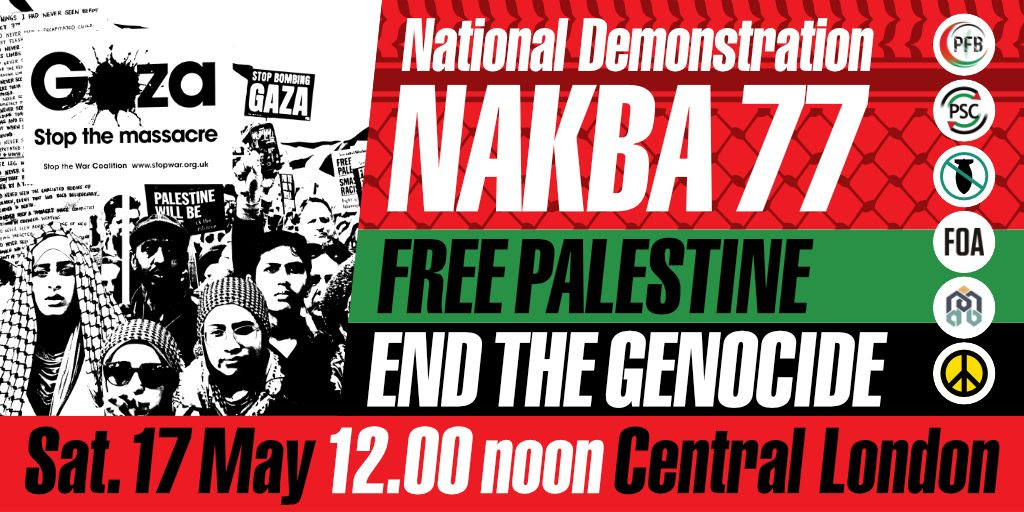We need to continue to resist these outrageous attacks on the right to protest and keep speaking out against Britain's complicity in Israel's war crimes. Please take part in the upcoming national day of demonstrations for Palestine on 12 April and start mobilising for the next national demonstration in London on 17 May, where we'll be marking the 77 anniversary of the Nakba.