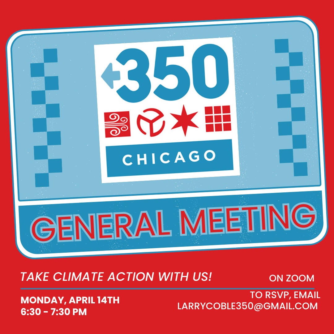 Our next 350 Chicago General Meeting is Monday, April, 14th from 6:30-7:30 PM. To join the meeting, please RSVP to [email protected] and he will send you the meeting link.