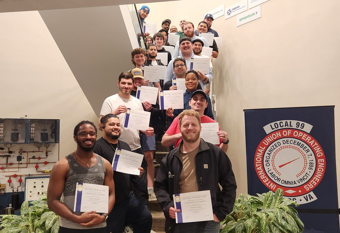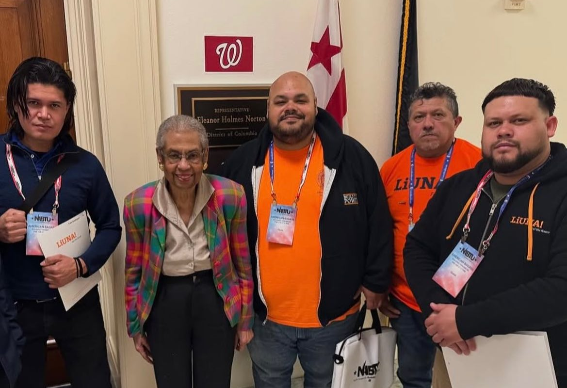 Left: LiUNA Mid-Atlantic met with elected officials last week as part of NABTU's national conference, including DC's Delegate Eleanor Holmes Norton. Right: Congrats to IUOE Local 99's third year apprentices who all passed their HVAC I International Exam!