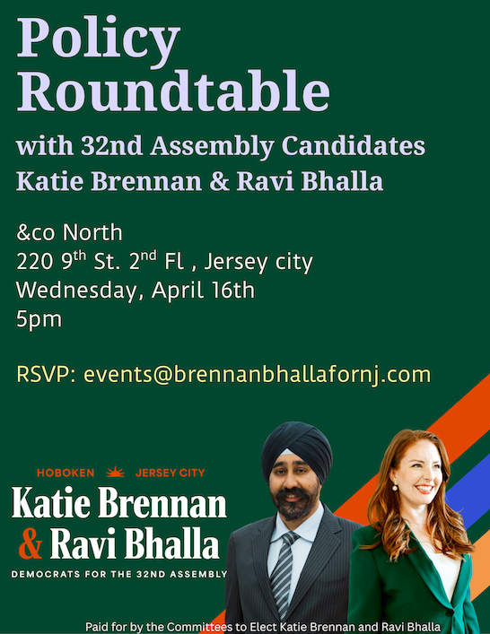 We’re excited to invite you to a special event to meet Ravi Bhalla and Katie Brennan, candidates for New Jersey State Assembly LD-32. This is a great opportunity to hear directly from Ravi and Katie about their vision for New Jersey and how they plan to fight for our communities but also share the issues that matter to you the most.