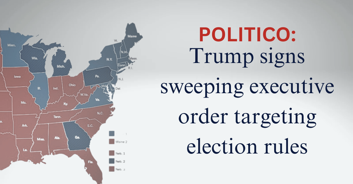 John — Trump's executive order is clearly unconsitutional. But that won't stop his cronies in the states from trying to dismantle voting rights at every turn.