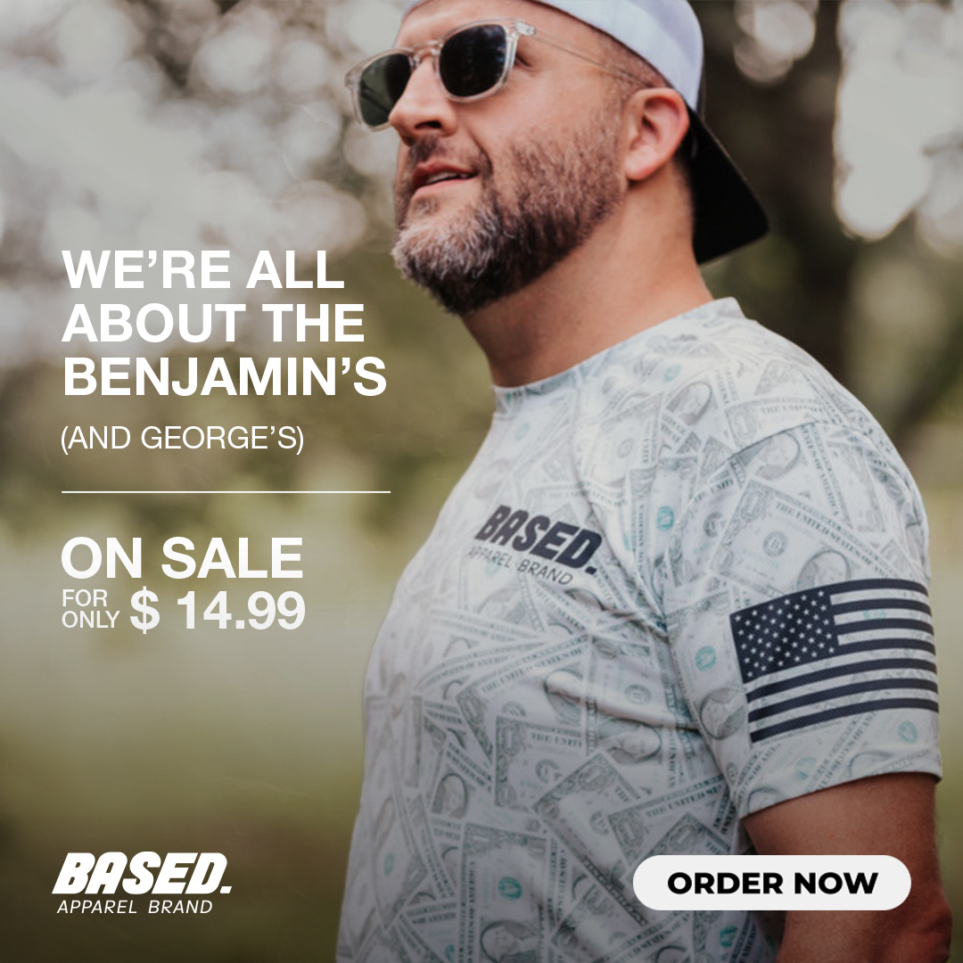 Put your pride where your dollars are with the George Dollar Bill T-Shirt—a bold tribute to American grit, legacy, and style. Priced at just $14.99, this tee turns heads while repping the values that never go out of currency. 🔥 Why You’ll Want It in Your Rotation: ✔️ Eye-catching dollar bill design with unmistakable attitude ✔️ Features the iconic Based Apparel logo and U.S. flag sleeve ✔️ Made for patriots who know freedom is the real flex Rep your roots. Rock your values. |
