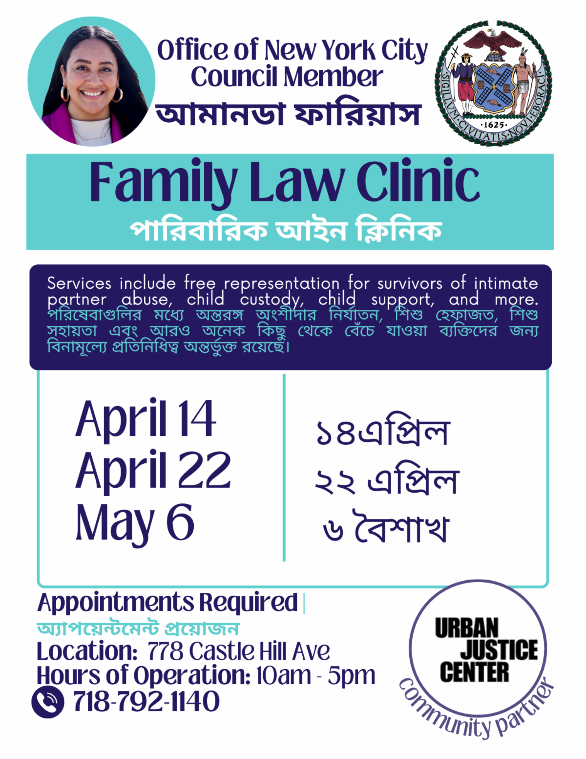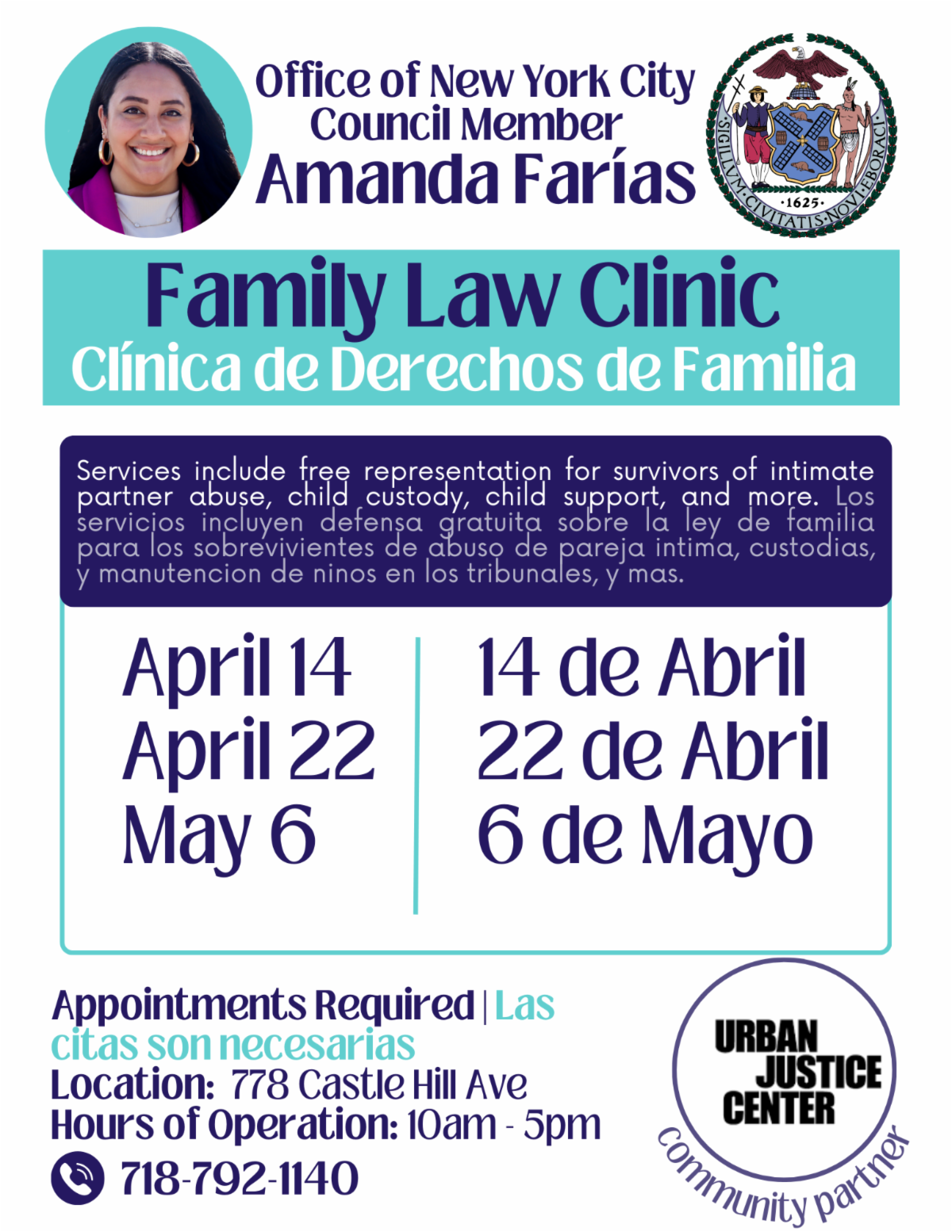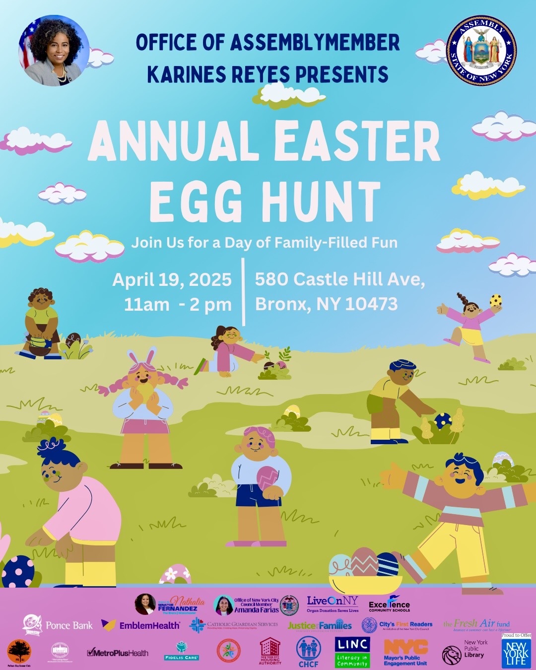 Get ready, Bronx — spring is popping off with fun for the whole family! From two festive Easter egg hunts and Bronx DA Clark’s 8th Annual Child Safety Fair to New York Restoration Project’s free tree giveaway, there’s something for everyone to enjoy. Our office is proud to support events that bring neighbors together and create joyful moments for kids, families, and the entire community. And remember, our door is always open to anyone in need of constituent services, including help with family law, immigration support, and more.