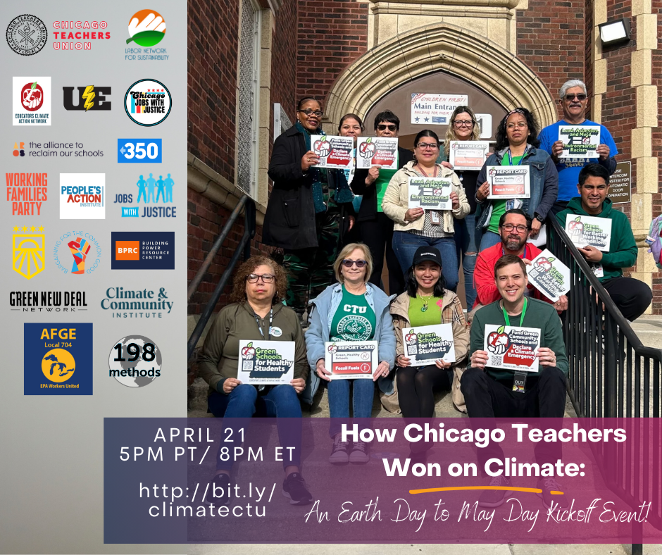 Kick off Earth Week on Monday, April 21 with the Labor Network for Sustainability and the Chicago Teachers Union by joining a special webinar event.