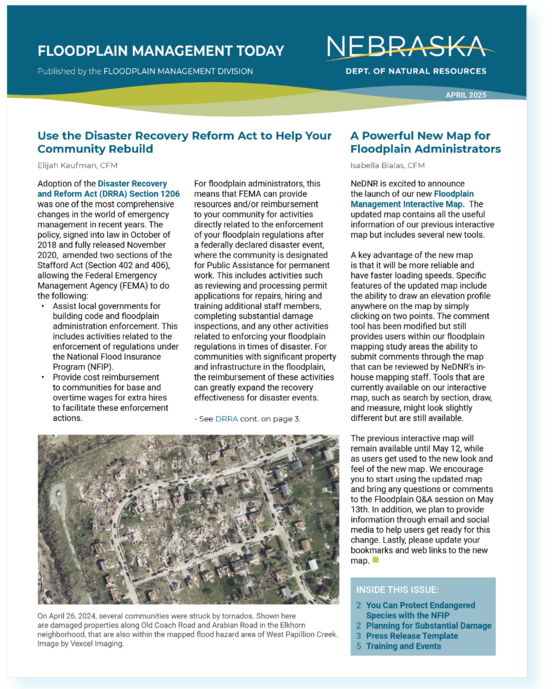 The April 2025 edition of NeDNR’s “Floodplain Management Today” is now available.
