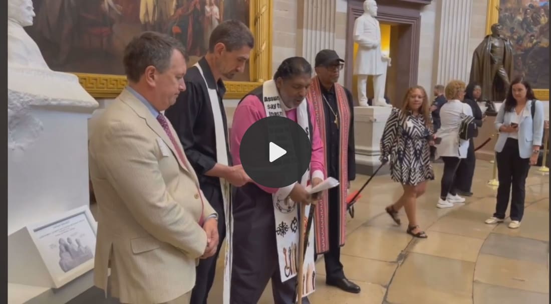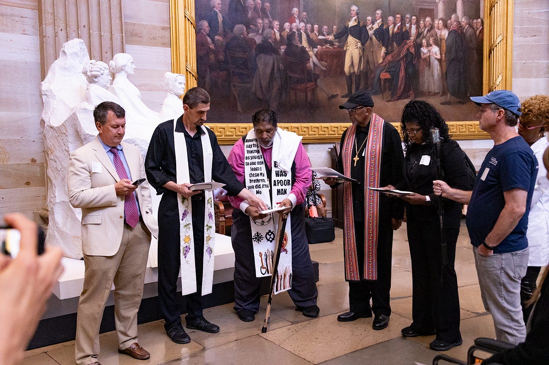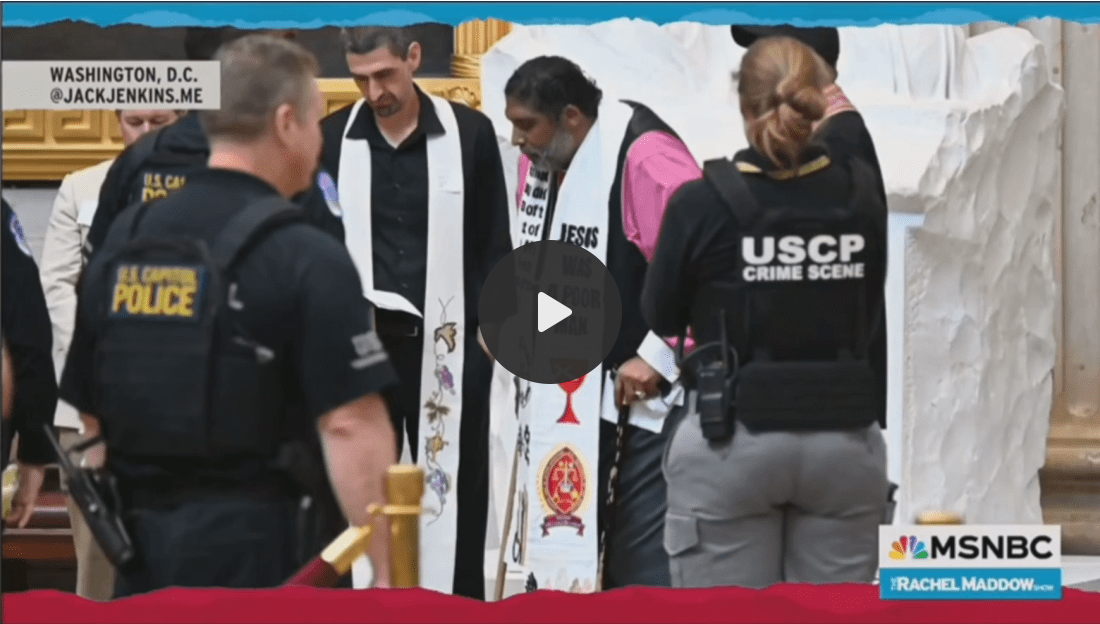 We Must Arrest the Attention of the NationAfter arrest at US Capitol, we have been released. We are OK, but all is not well.In the rotunda of the US Capitol yesterday, while praying in front of the monument that honors the founders of the women’s suffrage movement, we were arrested by Capitol police. We have been released from custody; thank you to everyone who has reached out to ask about us. We are OK, but all is not well. We were in Washington, DC, yesterday to launch Moral Mondays with fellow clergy, moral leaders, and scores of people who will be directly impacted by the disastrous budget that Congress has just come back into session to work on. Every illegal attempt to slash federal programs that Elon Musk tried to force through DOGE over the past 100 days is now being proposed as law by the leadership of this Congress. Though the mainstream media has not yet focused on the details of this budget, the facts are clear. Numbers do not lie. You cannot cut $1.5 trillion from the federal budget without slashing Medicaid, Medicare, SNAP, Head Start, Section 8, and other life-saving and life-sustaining programs that millions of Americans rely on and the vast majority of people support. This is why 12 Republican members of Congress have already written to House Speaker Johnson to challenge the proposed cuts to Medicaid. This is not a Republican versus Democrat debate. It's a life or death decision. Opening from “The Rachel Maddow Show.” Photo and reporting by Jack Jenkins of RNS. We are Christian preachers. When we made a vow to preach the good news to all people, in season and out of season, we committed to address life or death issues. This is often intimate and deeply work. We bless babies when they are born, we visit the sick, we welcome strangers to our dinner tables, and we pray with people when they are dying. But life and death work is also public work. As Christian preachers, we are also public theologians. When someone dies from poverty and a lack of healthcare, we cannot lie and say, “God called them home.” We have to tell the truth. They died because we live in a society that has chosen not to care for them. In the Bible, God calls public theologians to relocate their ministry when life or death issues are being decided in the public square. “Go down to the palace of the King,” God tells Jeremiah in a time when policy was decided in the King’s court. Why does the preacher need to go to the legislative body? Jeremiah is sent with a message for the legislators. “Act with justice and righteousness, and deliver from the oppressor anyone who has been robbed. And do no wrong or violence to the alien, the orphan, and the widow, or shed innocent blood in this place.” If a preacher knows that legislators are developing policy that will create injustice, it is our duty to “go down to the palace of the King.” If we know the people are being robbed by a budget that will take from the most vulnerable to give tax breaks to the rich, it is our duty to relocate our ministry to where these life and death decisions are being made. If our elected representatives are planning to pass a budget that will do violence to the “alien, the orphan, and the widow” by slashing funding at home while funding a bloated military budget that we know is being used to “shed innocent blood” in other places around the world, then we have a moral responsibility to be in our Capitol’s rotunda. We have a duty to pray—and to pray in public. Video of prayer at the US Capitol courtesy of Repairers of the Breach When Jeremiah prayed to God that his head might become a fountain of tears to grieve over the destruction of his people, he didn’t sit and pray in private. He went down to the palace of the King. When Jesus wept in the Garden of Gethsemane, crying and sweating blood in agony, he didn’t stay there. He went to the cross and made his prayer public. When our foremothers and forefathers gathered in Southern churches to cry out to God during the freedom movement, they prayed and sang and anchored themselves in faith. But they did not stay in the church house. They marched out into the streets and nonviolently confronted injustice. This is why we could not abdicate the obligations of our vocation when someone asked us to be quiet. We appreciate the Capitol police and have prayed with them and for them as they have dealt with the trauma of being assaulted during the insurrection on January 6th. We thank them for their service and have reassured them that our objection is not to them doing their job. Our insistence on prayer at this moment and in this space is about whether America’s elected representatives will do the job they swore to do when they put their hands on Bibles, the Quran, other sacred texts, and the US Constitution, promising to “establish justice, ensure domestic tranquility, promote the general welfare, provide for the common defense, and secure the blessings of liberty.” We know legislators cannot do this work alone. They are representatives of the people, and the people must help them to do what is right. We came to the Capitol rotunda to pray for representatives who currently support this immoral budget to see the danger of policy that kills and choose life. We came believing that God can take out a heart of stone and give anyone a heart of flesh. And we came knowing that, whatever their choice, we must nonviolently embody our prayer. As Rabbi Abraham Joshua Heschel said, we must “pray with our feet.” We must trust that, when we align ourselves with the truth at the heart of the universe, our action can unleash power beyond us, setting others free to act and respond in their own way to the moral urgency of this moment. Now is the time for each of us to stand up and speak up. We willingly and nonviolently submitted to arrest rather than cease our prayer not because we wanted to be arrested, but because we know that now is the time to arrest the attention o