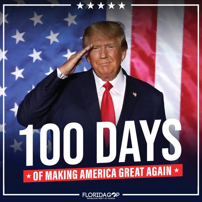 Today marks 100 days of the Trump Administration, and Florida is leading the charge! Our Sunshine State delivered the presidency for President Trump, powered by a surging voter registration advantage and unwavering support. Florida’s Man is keeping every promise, and we’re just getting started!