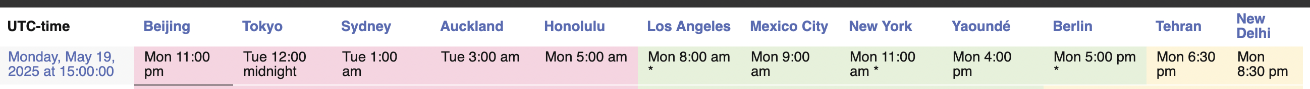 The timing is May 19, 2025, at 8 a.m. in Los Angeles, 9 a.m. in