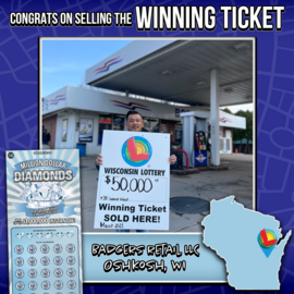 The Wisconsin Lottery retailer sold a winning $50,000 Million Dollar Diamonds scratch ticket to a player.