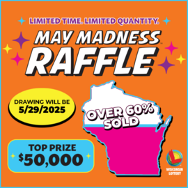 Over 60% of the 75,000 available May Madness tickets have been sold. The top prize is $50,000 with two $10,000 prizes available and 815 other prizes.