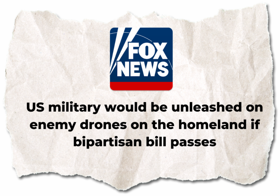 This week, I also introduced bipartisan, bicameral legislation to unleash the U.S. military on enemy drones within the U.S. The Comprehensive Operations for Unmanned-System Neutralization and Threat Elimination Response (COUNTER) Act would allow more military bases to become a "covered facility" to gain the authority to shoot down unauthorized drones that hover in their airspace.