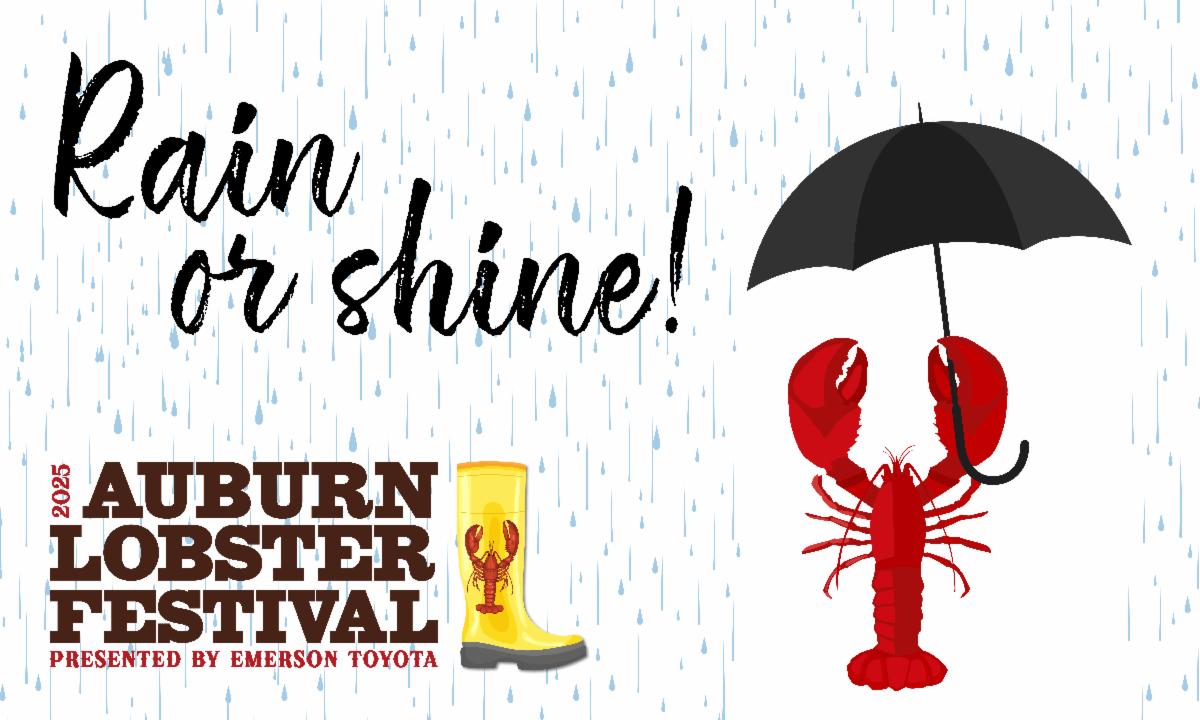 We'll have some tents set up for shelter, so grab your umbrella, poncho, and rain boots and join us at the Auburn Lobster Festival! Admission is free, so come enjoy the LIVE country music, food trucks & sweet treats, and local craft breweries/pubs (must be over 21 & present ID to purchase alcohol).