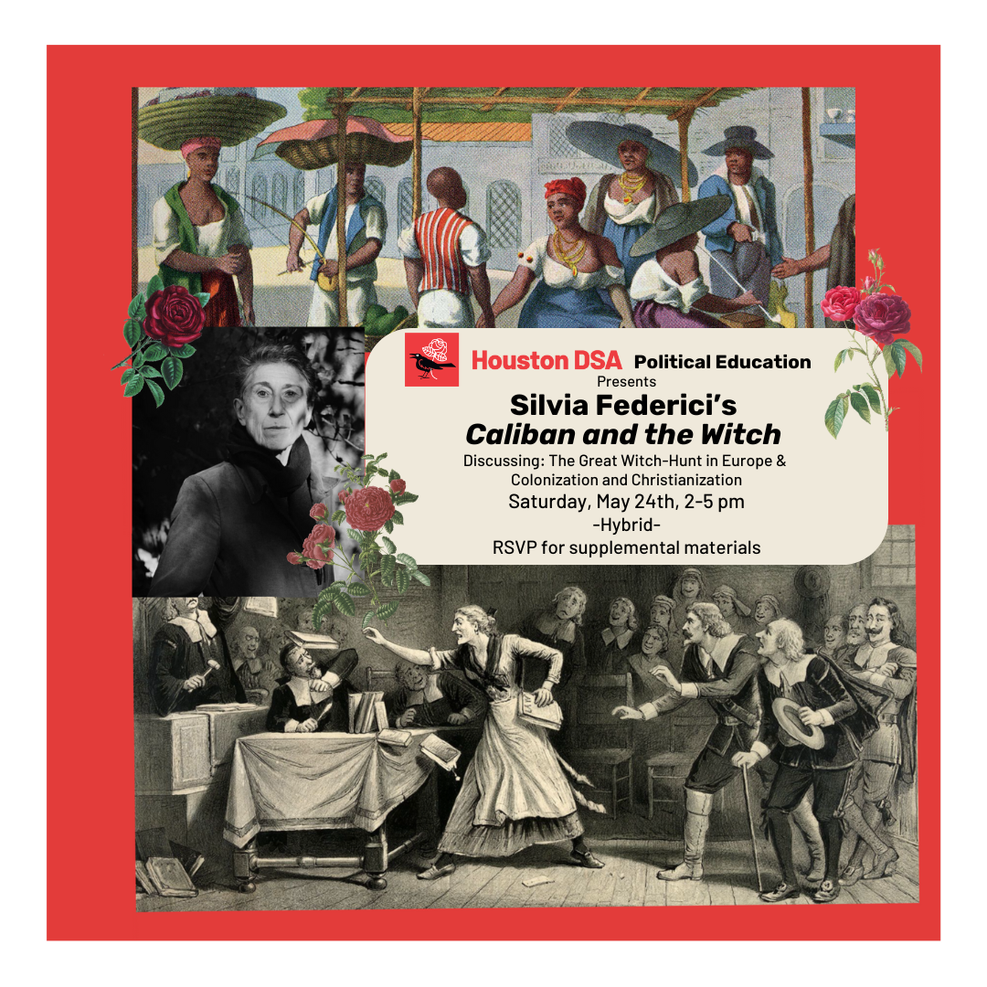 We are concluding our reading group for Caliban and the Witch, a feminist Marxist analysis of how the exploitation of women has been critical to the development of capitalism. Email [email protected] for a copy! We'll be at Menil Park and Zoom on Saturday, May 24th from 2-5pm.