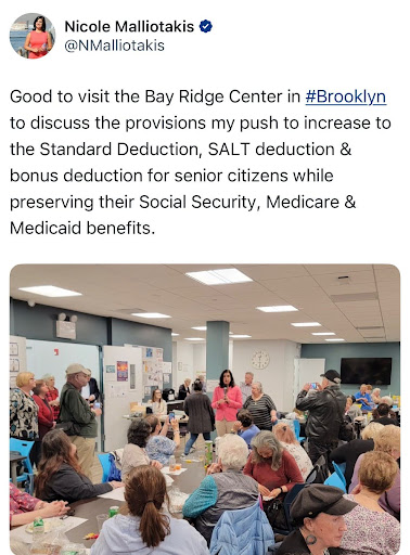 Rep. Nicole Malliotakis visited her NY-11 constituents in Bay Ridge, Brooklyn this week to discuss the work she’s doing in Washington to deliver tax relief for senior citizens.