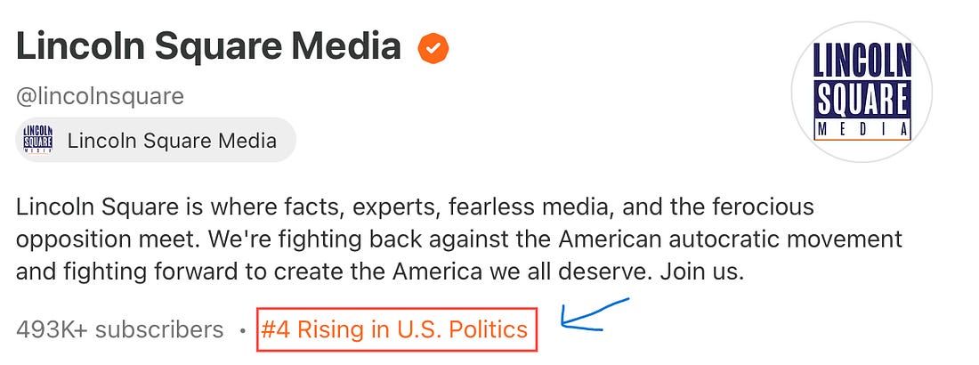 If you’re able, consider financially supporting our work by becoming a paid subscriber.What you’ve helped us build at Lincoln Square in just two months is truly remarkable. This isn’t just a media outlet. It’s not just where you find on-target essays and interviews with the best political strategists around: Rick Wilson, Joe Trippi, and Stuart Stevens. Lincoln Square is a community. Lincoln Square is YOU. And we have consistently been one of the fastest-rising political Substacks because thousands of people care about fighting back against authoritarianism the nonstop firehouse of lies coming from the Trump regime. We are the Ferocious Opposition who refuse to let democracy die at the hands of dull, vicious broligarchs. But we knew when we founded our pro-democracy, independent media network that there would be pushback. What we do each and every day threatens Trump, Elon and all the billionaires who want us to bow down. Our work threatens corporate media that have pitifully abdicated their responsibility to stand up for truth and the First Amendment because they’re obsessed with currying favor from Trump and his toadies in a desperate bid to stay relevant. And so that’s why you see access journalists like Chris Cillizza attack independent media and dismiss us as merely the #resistance. Maybe they should take a moment to ask themselves why Lincoln Square and other independent outlets are so in demand on Substack — while newspapers and cable news channels keep shrinking. It’s because people are getting news and information they value and are willing to pay for it. (That’s how the free market works, by the way). And sure, Chris just might still be bitter that CNN fired him. But Washington is full of people who sneer at those of us who are alarmed by what’s happening to our country under Trump — those of us who try to do the right thing, who still believe in the promise of American democracy, and are willing to fight for it. They think we’re suckers and losers. But there are more of us then there are of them. I truly believe that. You make me believe that every day — with the emails you write us, your thoughtful questions in our live chats and your comments on our social media channels. It’s so inspiring. Let’s face it: Traditional newsrooms are shackled by shrinking budgets, corporate owners, and a smug culture that prizes “both‑sides” symmetry — even when everyone knows one side is trafficking in lies. Radical‑right outlets exploit that weakness, pumping conspiracies into America’s bloodstream around the clock. But at Lincoln Square, we don’t answer to billionaires or corporate shareholders. We answer to you. Our editorial north star is courage, not access. Orwell once said, “In a time of deceit telling the truth is a revolutionary act.” Those are the times we’re living in today. We’re fighting every day, and we’re asking you to fight with us. We know it’s not always easy for people to afford a Lincoln Loyal subscription thanks to Trump’s tariffs and DOGE cutbacks. So if you can afford to support our work, please know that you are helping make sure that it stays accessible for everyone. Thank you for being part of our community and helping us grow Lincoln Square. We’re just getting started. You’re currently a free subscriber to Lincoln Square Media. For full access to our content, our Lincoln Loyal community, and to help us amplify the facts about the assault on our rights and freedoms, please consider upgrading your subscription today with this limited-time offer: |