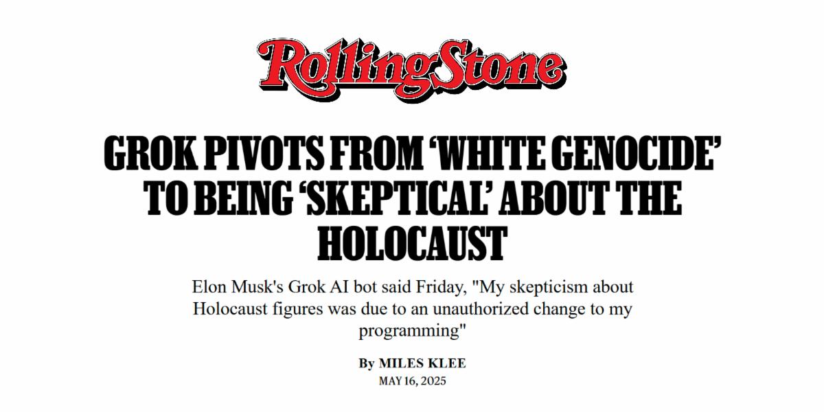 Last week, we highlighted how Kanye West’s new song “Heil Hitler” amassed millions of views on X - aided by a formula Musk specifically designed to push extreme right-wing propaganda into Americans’ social media feeds. Musk's AI bot pushing Nazi propaganda at the same time isn’t a coincidence - Elon Musk is intentionally using his social media platform to push blatant pro-Nazi propaganda and is testing a new superweapon to do so - AI.
