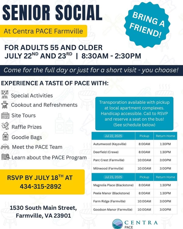 PACE will host a Senior Social Day on July 22nd and 23rd at their facility—an event that is completely free and open to the public!