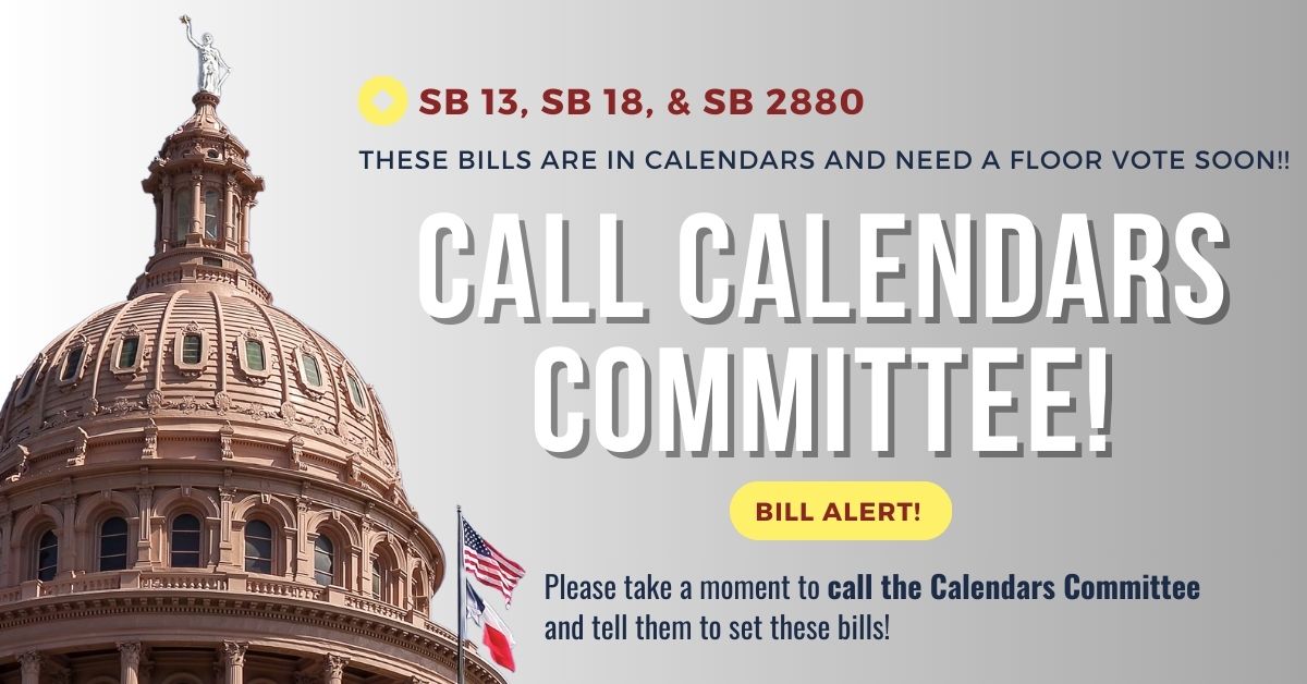 SB 13, SB 18, & SB 2880 Need a Floor Vote!Call Calendars Committee Member Now! |